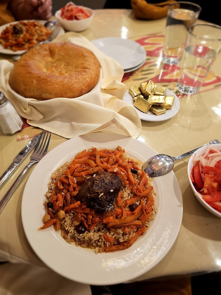 The menu at this location is thoughtfully curated, offering a range of dishes that showcase authentic flavors without being overwhelming. One standout dish was their signature lamb kebabs, perfectly seasoned and grilled to a tender finish. The chef explained that they use a marination process inspired by traditional Samarkand recipes, which not only enhances the flavor but also keeps the meat juicy. Pairing it with their saffron rice and freshly baked flatbread created a combination that felt both rich and comforting. I noticed that several other tables were also enjoying similar dishes, which confirmed the popularity of these items among locals and first-time visitors alike.